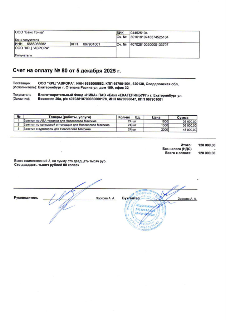 Вы можете частично или полностью перевести средства на наш расчетный счет: № 40703810700030000178, Корреспондентский счет 30101810500000000904, ОГРН 1116600003849, ИНН / КПП — 6679996047, 667901001, либо частично или полностью перевести средства на счет КРЦ «Аврора» (счет прилагается).